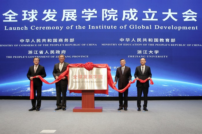 3月15日,全球发展学院成立大会在浙江大学紫金港校区举行。商务部部长王文涛、浙江省省长刘捷、教育部副部长杜江峰、浙江大学校长马琰铭以及外交部、联合国驻华发展机构相关代表出席大会。